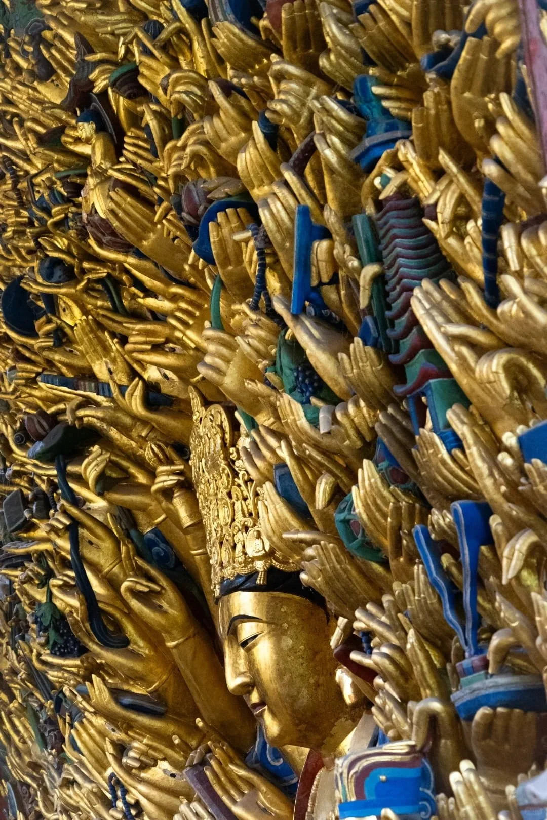 The main cultural draw is Dazu Rock Carvings, a UNESCO World Heritage Site about 90 minutes from central Chongqing. Carved between the 9th and 13th centuries, they represent the last monument of Chinese Buddhist cave art. The Thousand-Handed Guanyin features 1,007 actual hands, each in a different mudra. What sets Dazu apart is the storytelling: unlike earlier cave temples that focused on divine majesty, these carvings show everyday life including drunken monks, nursing mothers, and children playing.